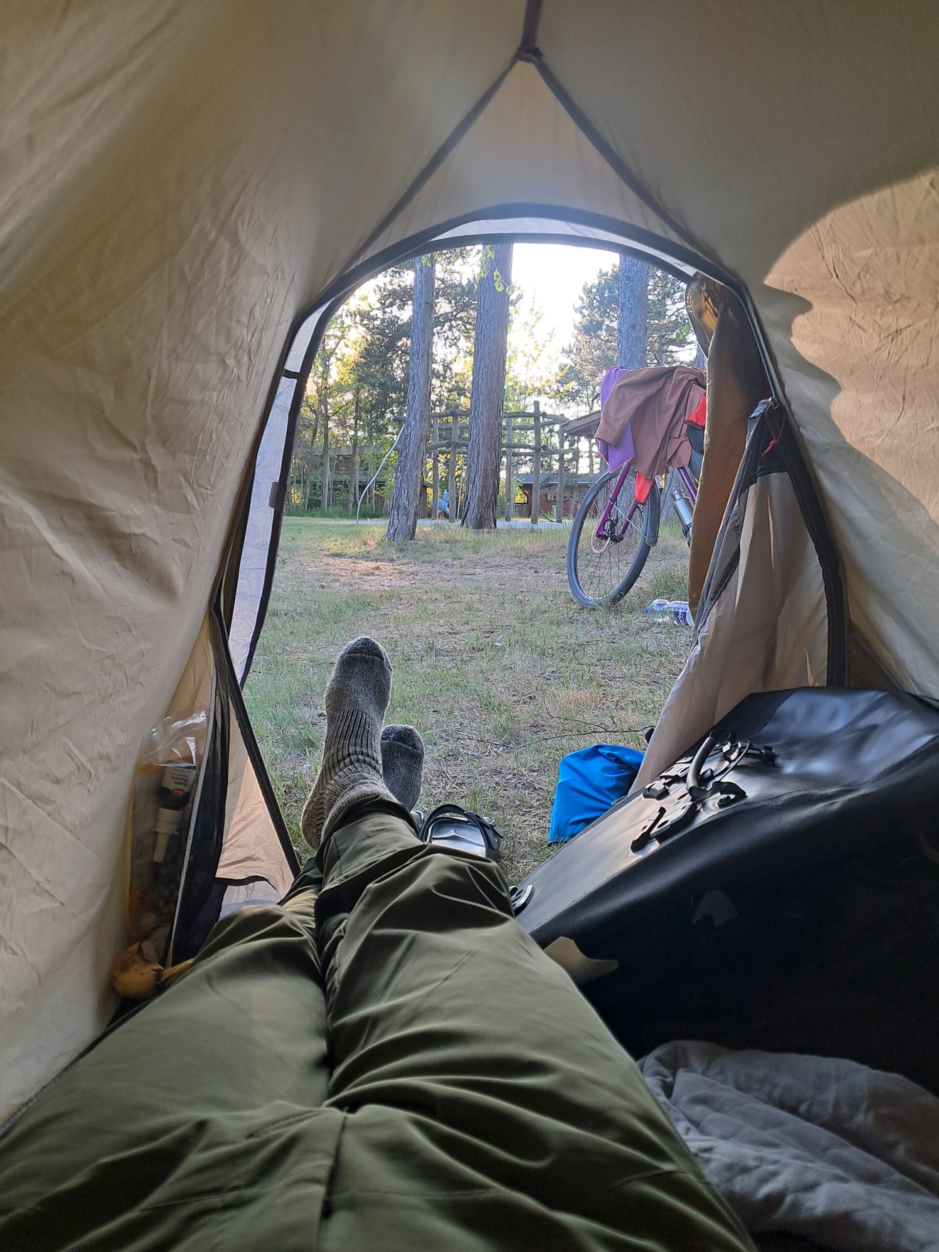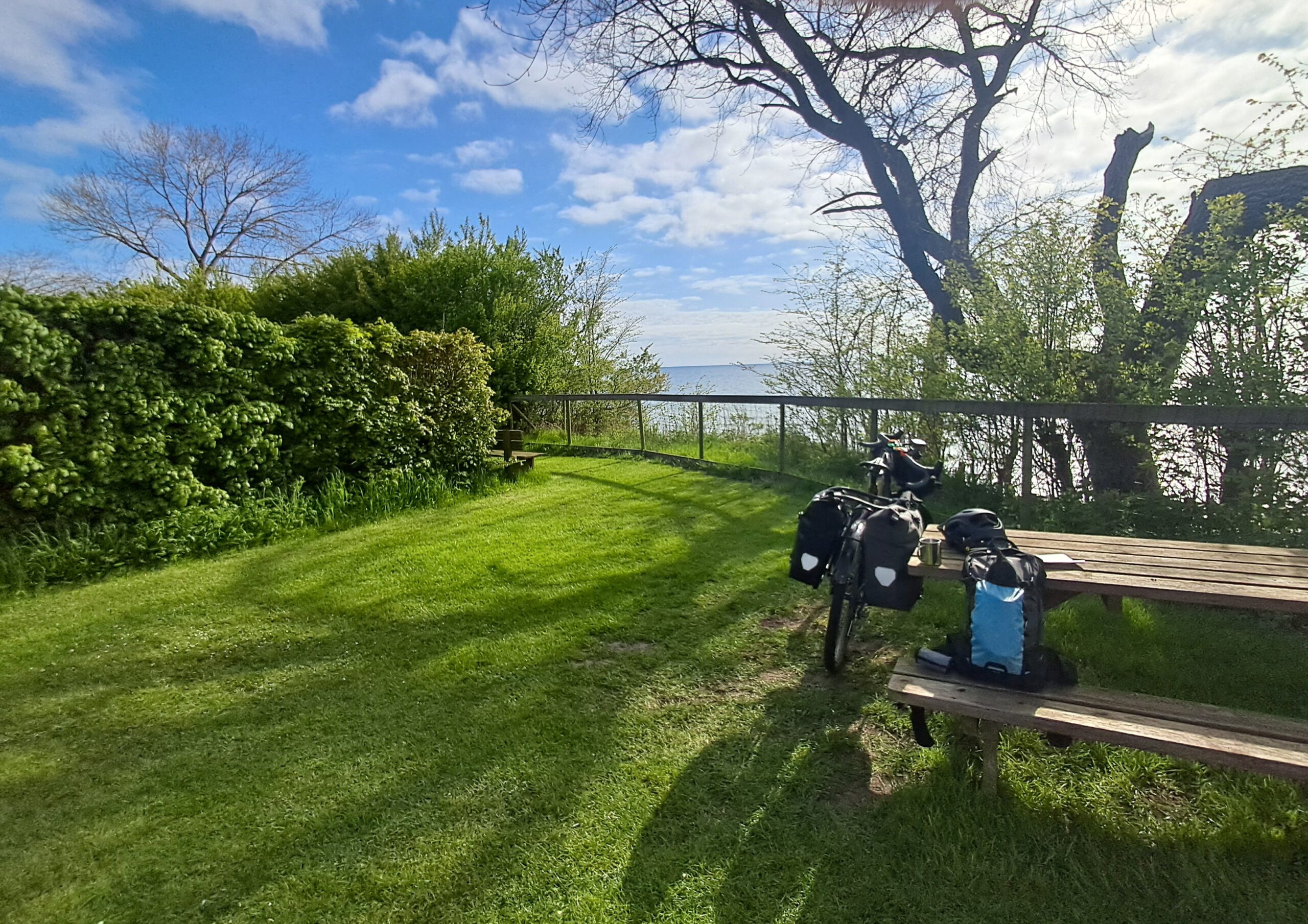 Als ich schließlich mein Zelt aufstellte, zeigte der Tacho eine erste Zwischenbilanz: rund 178 Kilometer seit dem Start in Stralsund, davon etwa 40 Kilometer auf der Fähre. Ein angenehmer Einstieg in die dänischen Etappen – begonnen im Regen, beendet mit Sonne, Meer und einer warmen Dusche. Genau so darf eine Reise weitergehen.