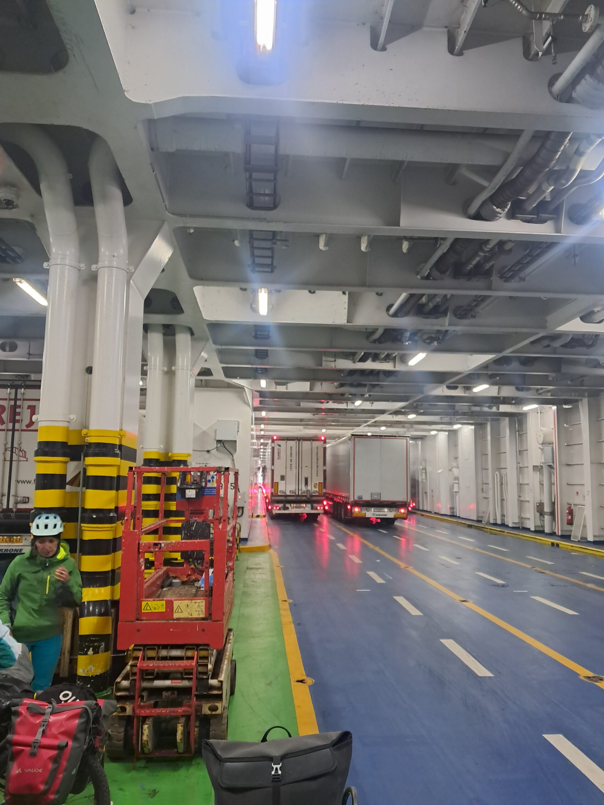 Strom gab es unkompliziert über ein geliehenes CEE-Kabel, und kurz vor Ladenschluss schaffte ich es noch in den nahegelegenen Supermarkt. Der Abend verlief ruhig, fast entschleunigt. Mit dem Wissen, am nächsten Morgen nur noch wenige Kilometer bis zur Fähre zurücklegen zu müssen, konnte ich den Tag entspannt ausklingen lassen.