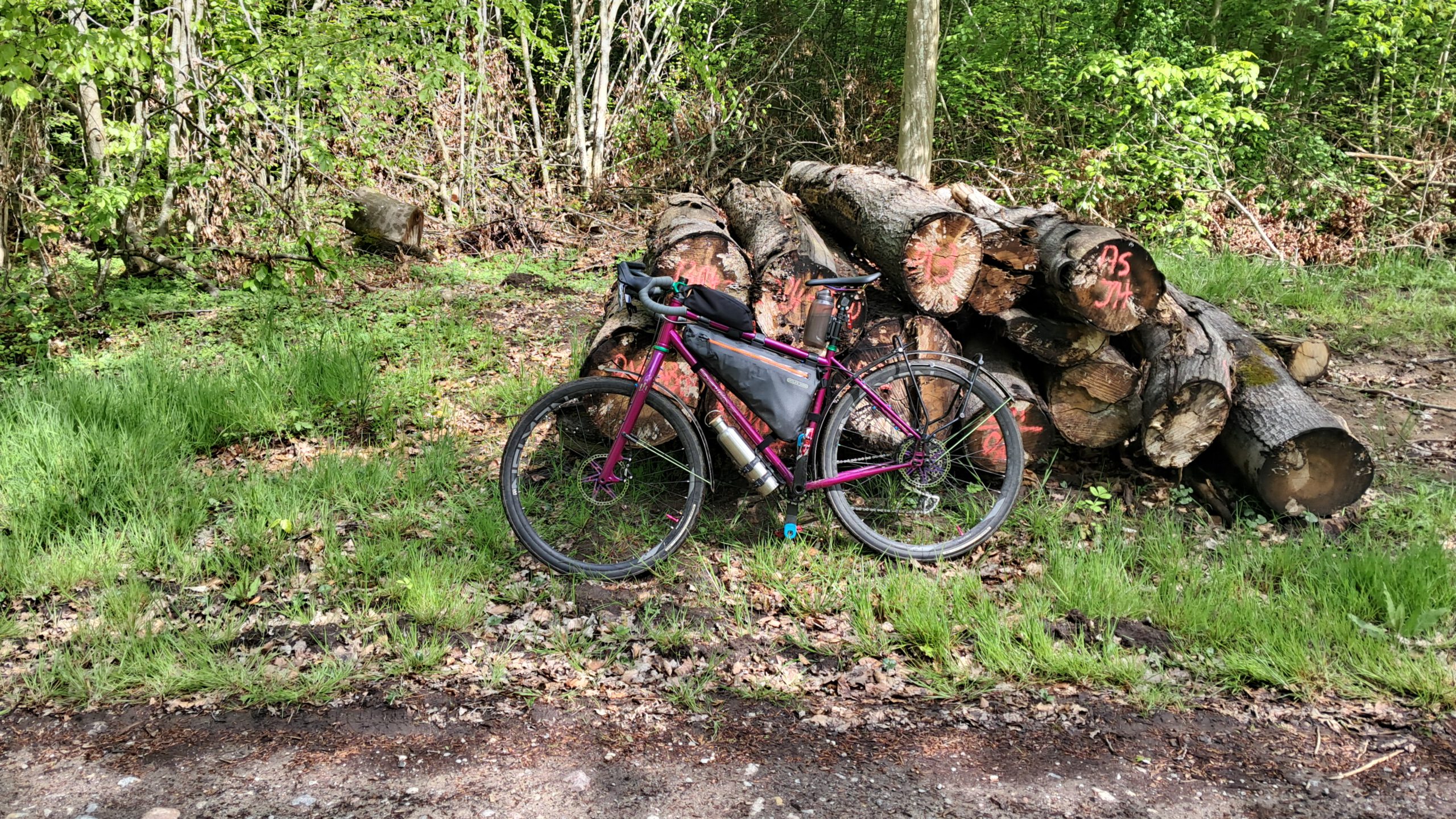 Schon nach den ersten Kilometern bestätigte sich die Entscheidung. Die Strecke führte durch weite Wald- und Forstgebiete, gut markiert, aber angenehm abgelegen. Der Untergrund wechselte zwischen festgepresstem Erdboden und feinem Schotter, immer gut fahrbar. Oft war es so still, dass nur das Summen des Freilaufs und das Rollen der Reifen zu hören waren. Zwischendurch tauchten alte Bauernhöfe auf – Orte, die wirken, als wäre der Alltag dort seit Jahren auf Pause.
