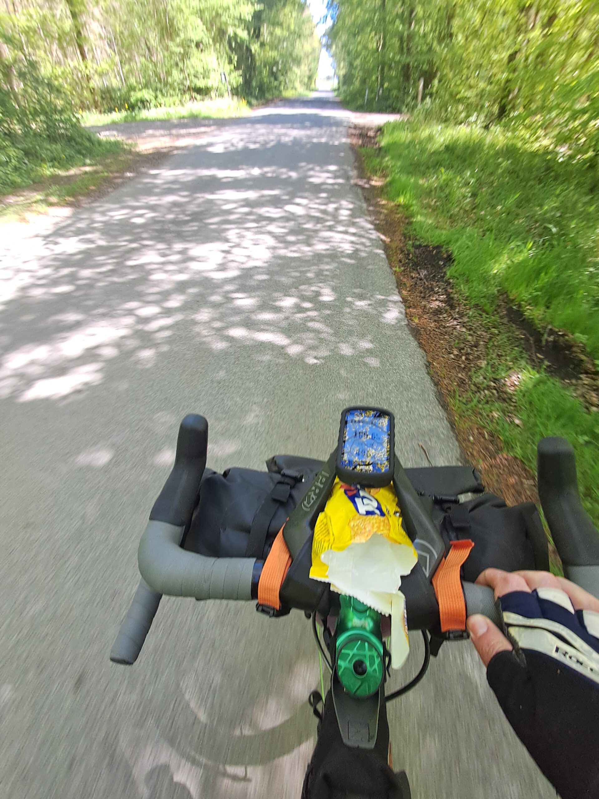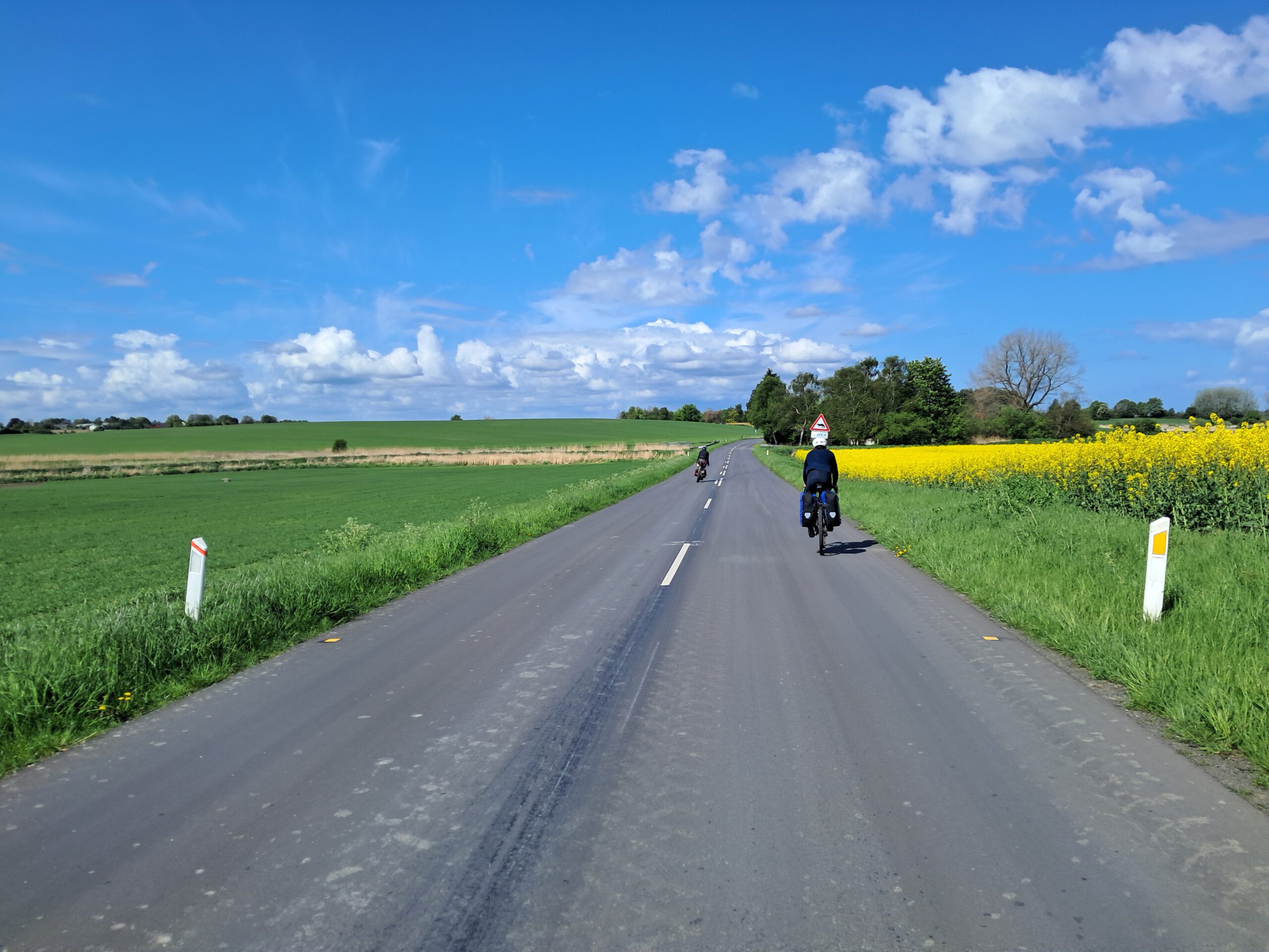 Hinter Neustadt wurde die Strecke ruhiger. Es ging vorbei an der Pönitzer Seenplatte, durch die Haffwiesen und über kleinere Straßen sowie kurze Waldabschnitte. Die Abstände zwischen Versorgungsmöglichkeiten wurden größer – ausreichend Wasser dabei zu haben, erwies sich hier als sinnvoll.