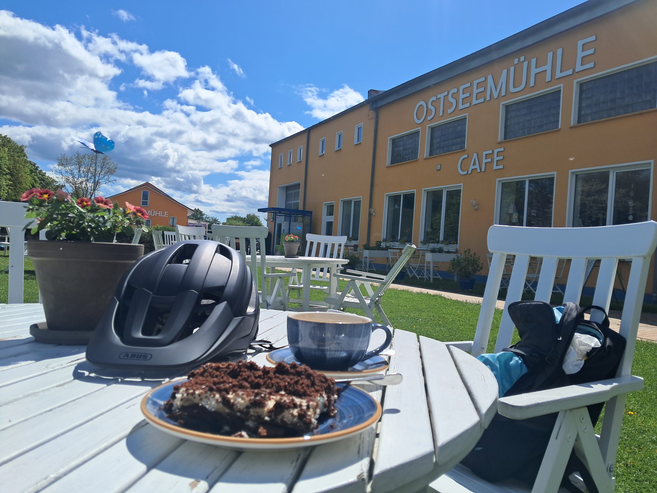 In Negast und später in Nienhagen machte ich kurze Stopps: ein Kaffee, ein paar Minuten sitzen, kurz entspannen. Kleine Unterbrechungen, die den Rhythmus der Tour angenehm strukturieren.