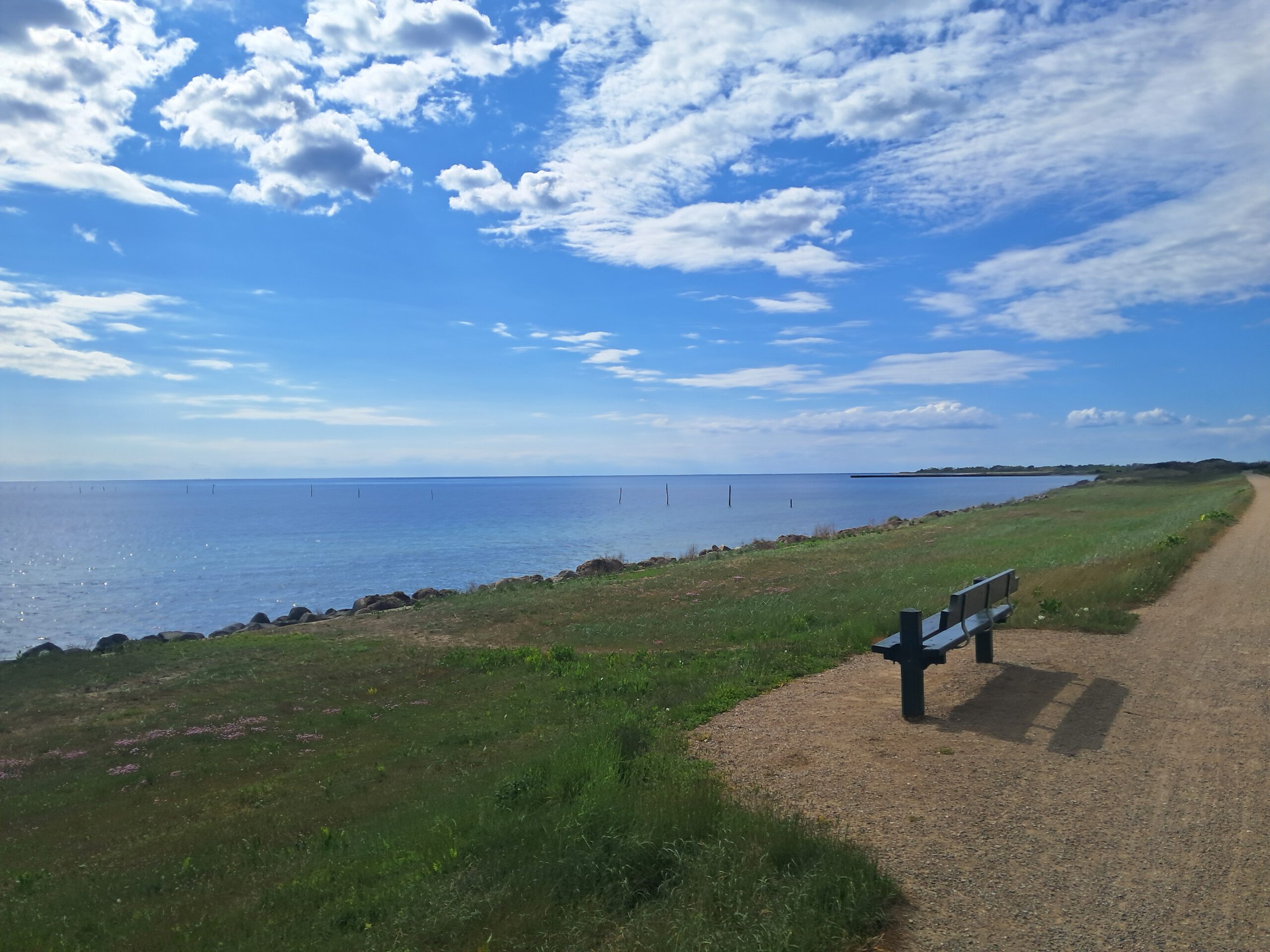 Die neu gewählte Route führte mich zunächst nach Masnedsund und über die Storstrømsbro, die Masnedø mit Falster verbindet. Die Straßen waren weit, offen und erstaunlich ruhig. Verkehr spielte kaum eine Rolle, stattdessen bestimmten Felder, Wind und gelegentlich kleine Fischerhäfen das Bild – ideale Orte für kurze Pausen.