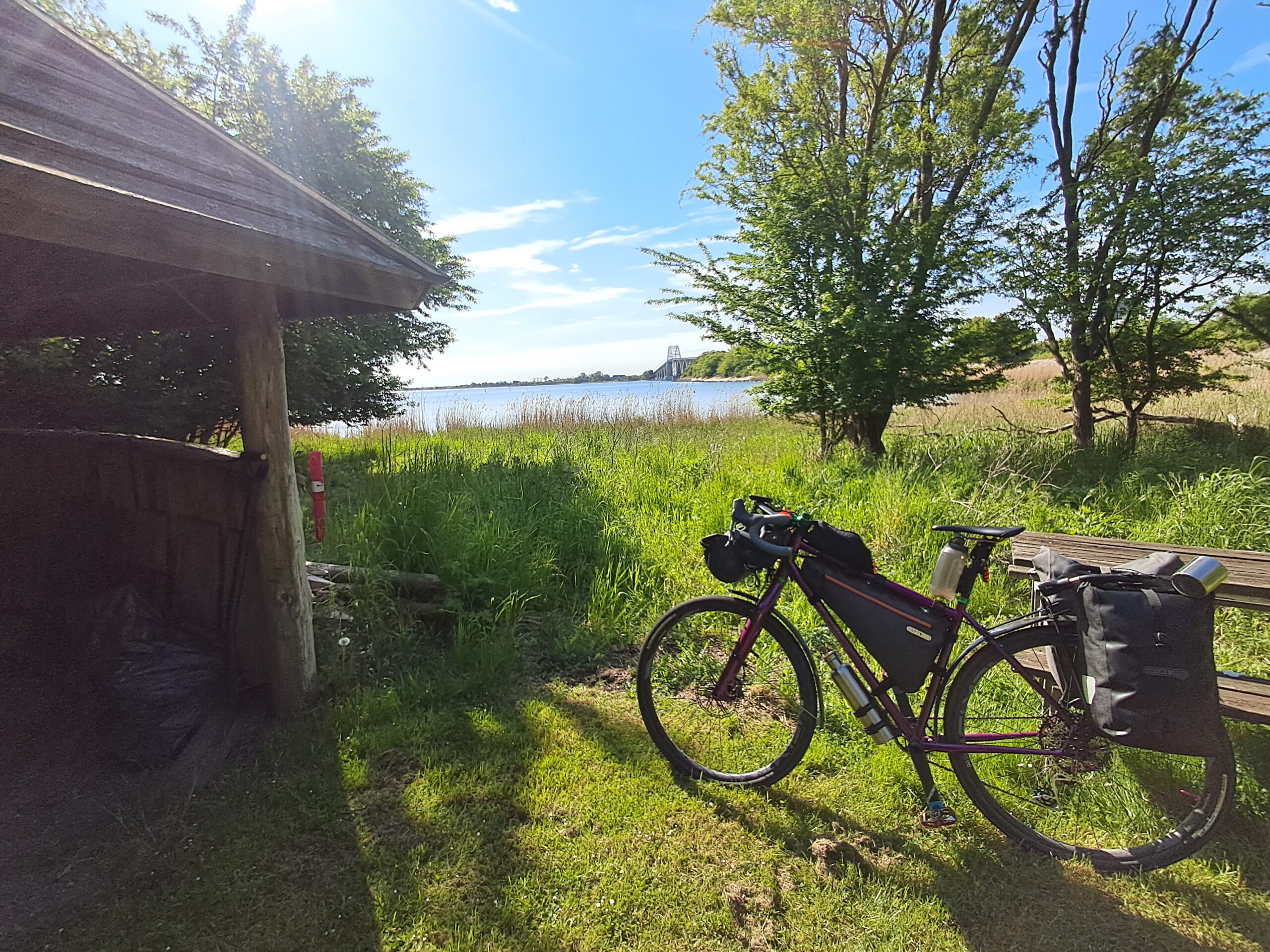 Kurz vor Stubbekøbing traf ich auf zwei Bikepacker, Max und Freddy, die von Berlin aus unterwegs Richtung Kopenhagen waren. Sie hatten die Nacht zuvor in einem Shelter verbracht – einfachen Naturlagerplätzen mit Hütten und Feuerstellen, wie sie in Dänemark weit verbreitet sind. Über die Shelter-App, erklärten sie mir, lassen sich diese Plätze problemlos im ganzen Land finden. Eine praktische Ergänzung für zukünftige Touren.