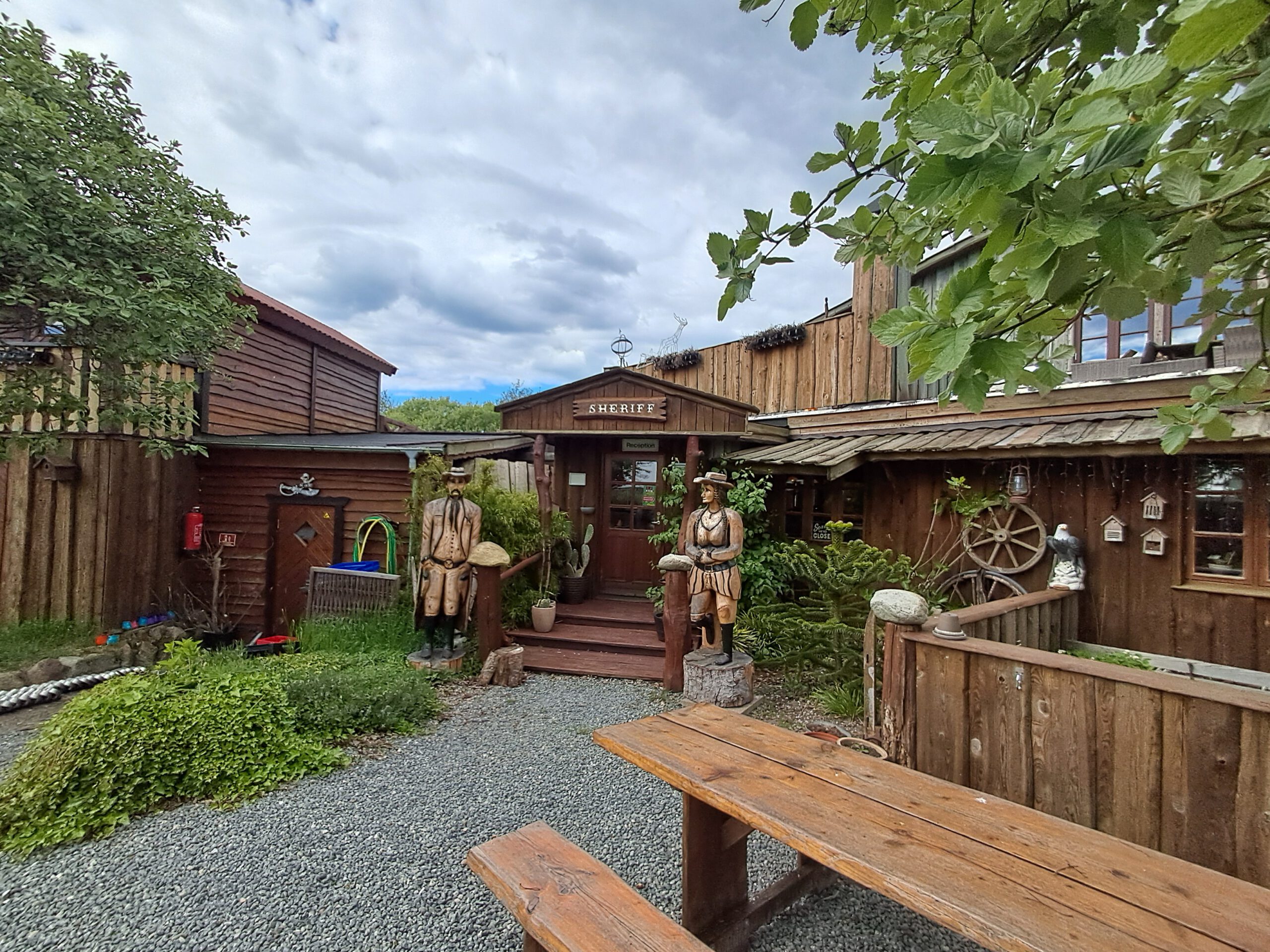 In Rødbyhavn angekommen, schaute ich mir zwei Campingplätze an: Hummingen Camp und Western Camp. Letzterer fiel sofort auf. Ein Platz im Westernstil, mit Holzbauten und viel freier Fläche – fast wie eine kleine Filmkulisse. Bis auf einige Dauercamper war kaum jemand vor Ort. Entsprechend besonders fühlte es sich an, mein Zelt mitten auf einer großen, offenen Wiese aufzubauen.